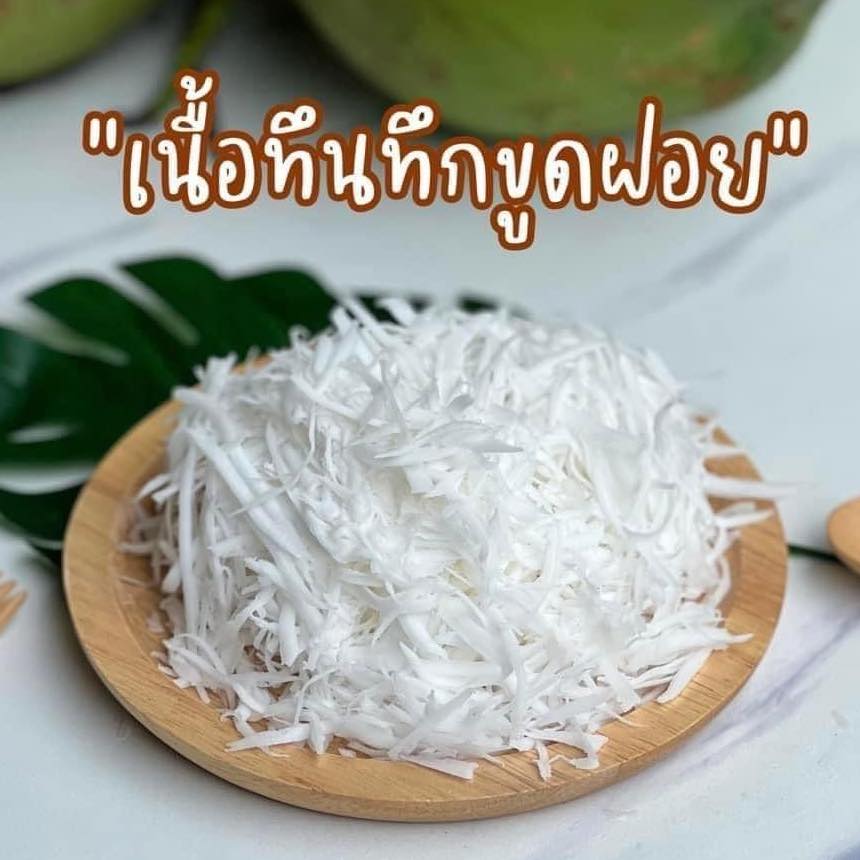 เพิ่มความหอมหวานแบบไทยๆ ด้วยมะพร้าวขูดฝอย! ทำจากมะพร้าวสด เนื้อนุ่มละมุน เหมาะสำหรับโรยหน้าขนมไทย ไอศกรีม หรือทำขนมอบ คัดสดจากสวน คุณภาพดี พร้อมนำไปใช้ได้ทันที